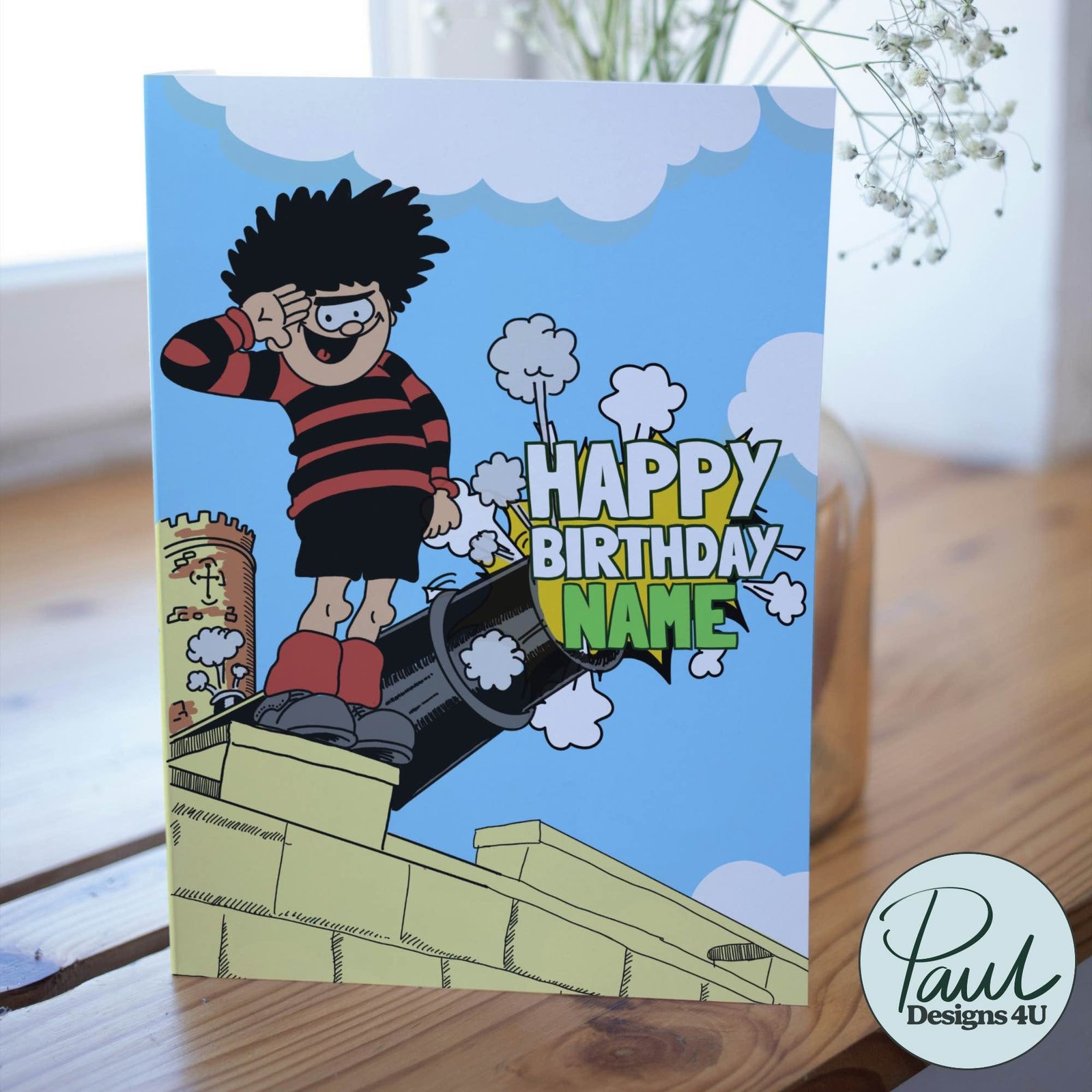 Ready to create some birthday magic? Personalise your Dennis the Menace Birthday Cannon card today – KA-POW!
